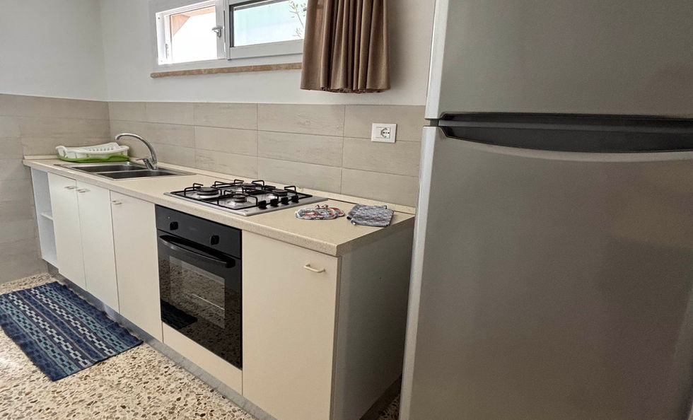 L'appartamento è composto da soggiorno/cucina, 2 camere da letto + un letto singolo posto in un disimpegno, bagno completo con doccia. Inoltre l'appartamento è dotato di tv, zanzariere, climatizzatore, lavatrice, doccia esterna in comune con veranda coperta attrezzata con tavolo e sedie da giardino. In dotazione un passa auto per parcheggio esterno.